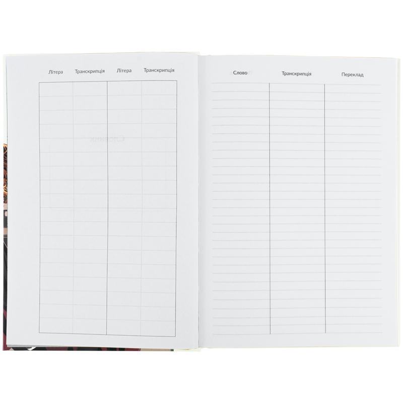 Передбачені окремі сторінки для запису правил. На якісному світлому папері щільністю 65 г/м2 комфортно писати. Практична обкладинка забезпечує тривале збереження словника в акуратному вигляді. Тверда палітурка – ідеальне рішення, адже словник буде використовуватися не один семестр. Стильний дизайн додасть гарного настрою та надихатиме навчатися із задоволенням.
