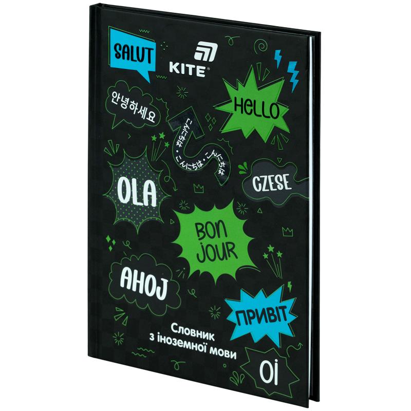 Словник для іноземної мови Kite K26-407-2 Привіт, 60 аркушів – надихає із задоволенням вивчати нову лексику. Лініювання – чітке та зручне, з полями для запису слів, транскрипцій і перекладу. На форзаці: англійський, французький, німецький та польський алфавіти.