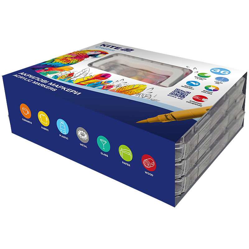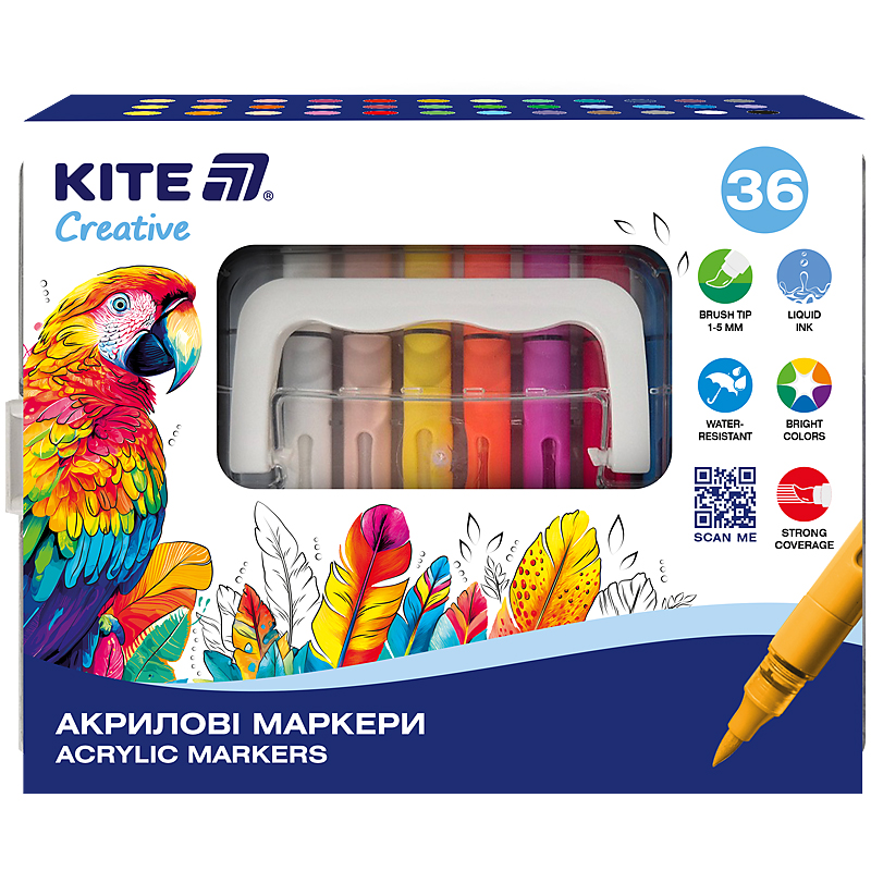 Акрилові маркери Kite Creative K-1163 з рідкими чорнилами – набір для яскравої творчості та безмежних ідей. Вони відкривають нові можливості для малювання та декорування. Головна особливість цієї серії – інноваційна система прямої подачі чорнил (free ink system). Завдяки рідкому стану чорнил маркери пишуть рівномірно до останньої краплі, а термін їхнього використання суттєво збільшується у порівнянні з маркерами з фільтром.