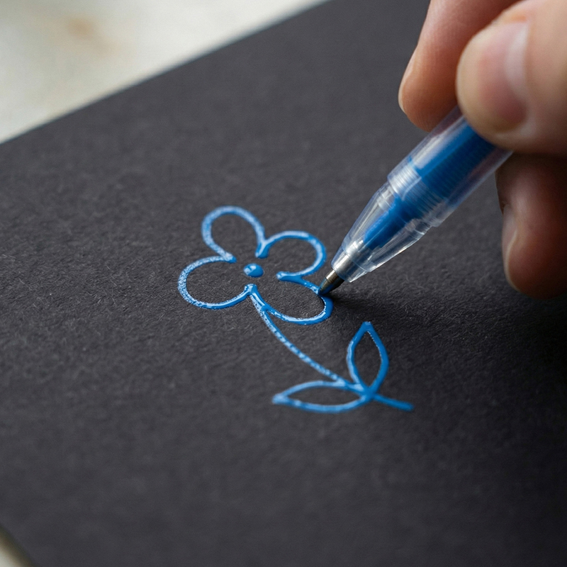 Акрилові чорнила насичені, швидко висихають і стійкі до стирання. Завдяки особливій формулі фарби, лінії виходять рельєфними, а відтінки залишаються виразними навіть на темних чи кольорових основах.