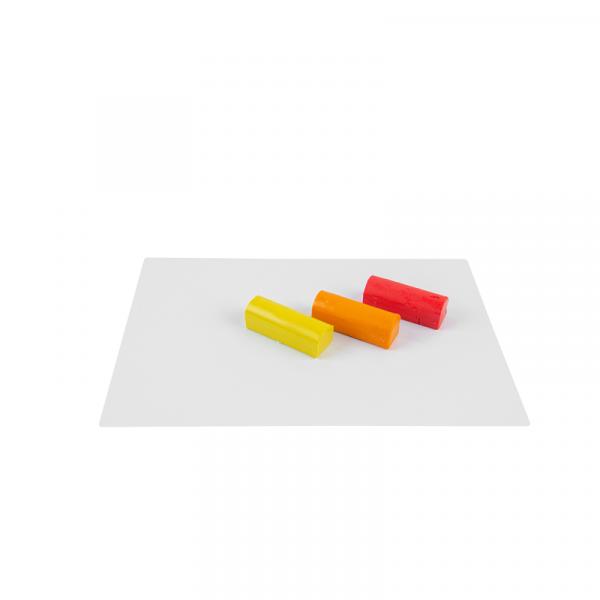 Дошка для роботи з пластіліном. Формат А5, розмір 148 x 210 мм. Виготовлена з білого гнучкого пластику товщиною 1 мм з гладкою поверхнею. Після використання легко очищається. Має закруглені краї. Допомагає зберігати чистоту на столі і створює зручність при роботі з пластиліном.