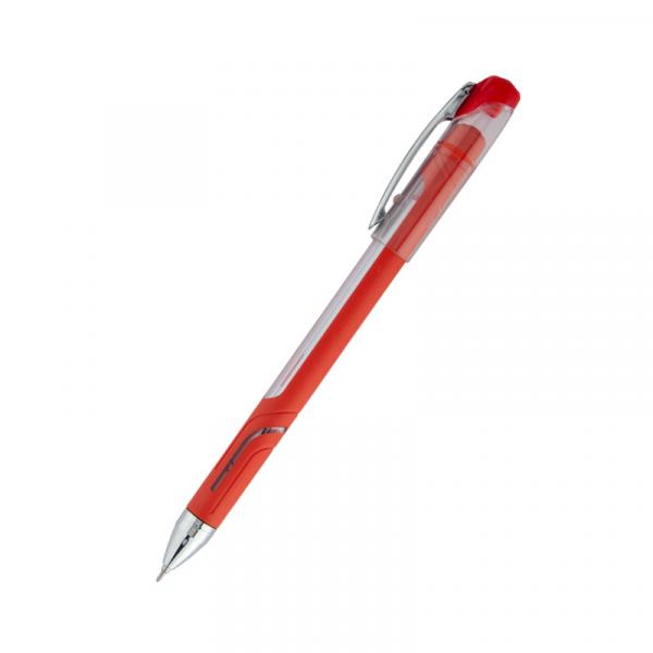 Ручка кулькова з непрозорим прогумованим корпусом з прозорими пластиковими вставками і металічним кліпом.Чорнило екстра в'язкості забезпечує суперм'яке письмо. Колір корпусу відповідає кольору чорнила. Пишучий вузол 0,7 мм. Колір чорнила: червоний.